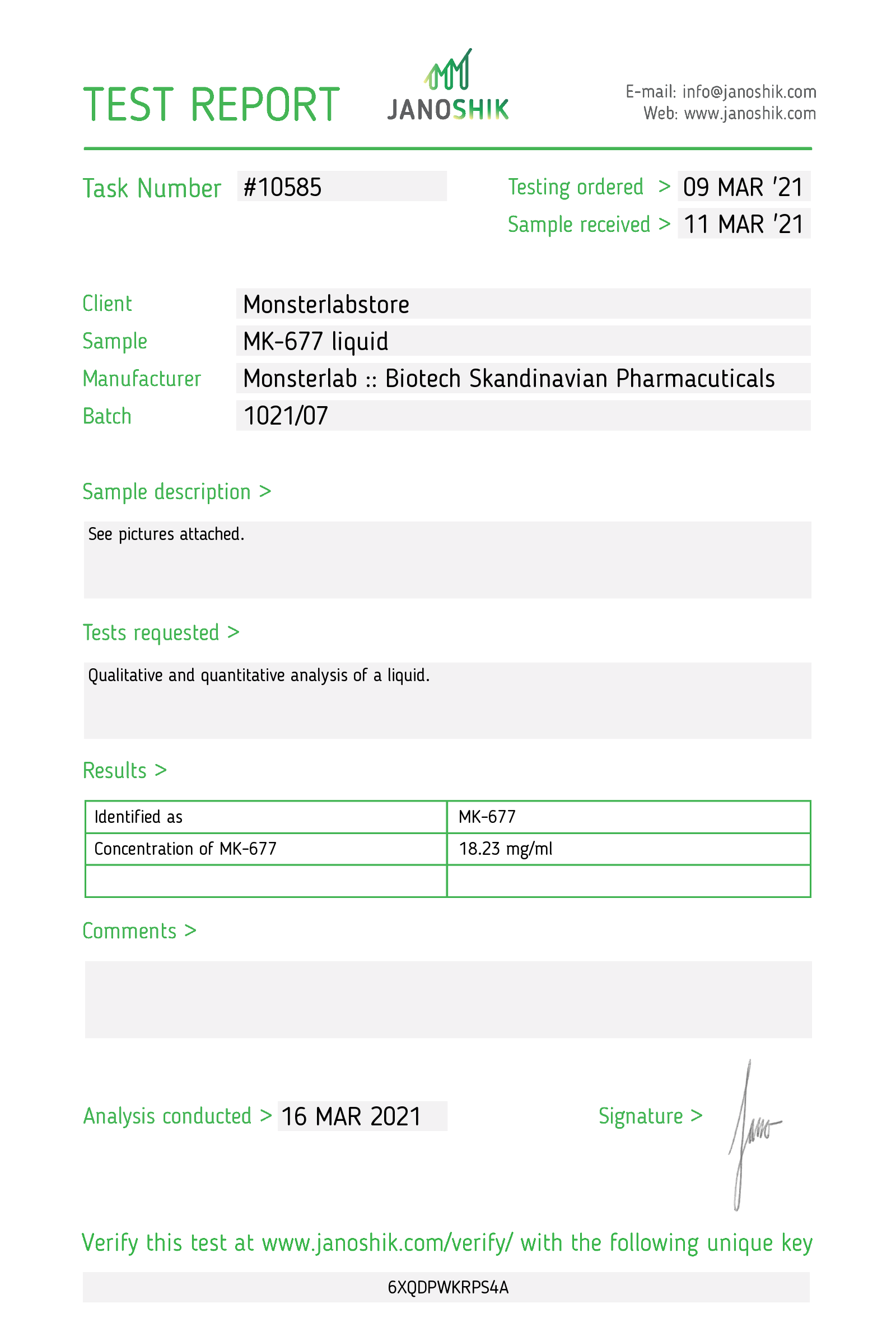 MK 677 is non-hormonal and therefore requires no PCT after the cycle is over. It is best utilised in at least a 3 month cycle with dosage increasing each month. The optimal dosing time for MK 677 is at night directly before going to bed. You should start to notice a deeper sleep almost immediately. If you should wake up with numb or tingly hands, do not worry. This is a common side effect of the extra GH in the system.